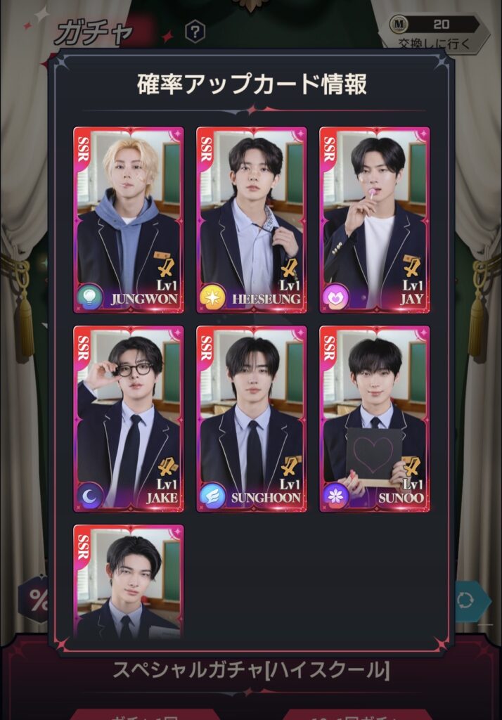 ENHYPEN WORLD限定の実写フォトカードが収集できます。カードをレベルアップさせると特別なセルフィーカードも解放されます。