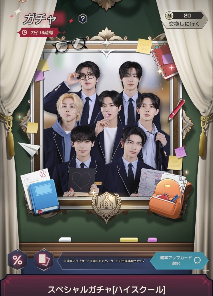 好きなメンバーにアイテムをプレゼントすることで親密度が上がります。親密度が高まると、特別なプレゼントがもらえたり、衣装を変更したりもできます。